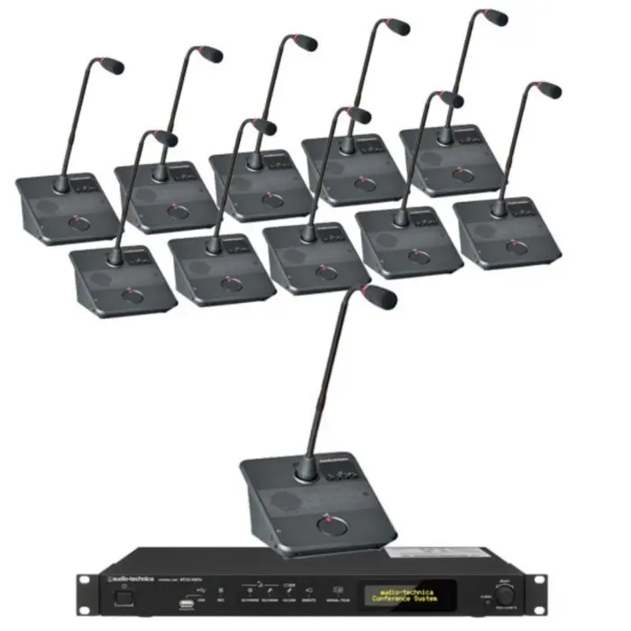 AUDIO-TECHNICA ATUC-50DU+M43H SET 11 ท่าน ชุดไมค์ประชุมใช้สาย ดิจิตอล 11 ท่าน ก้านไมค์ยาว 43 ซม.ในซีรีย์ ATUC-50 ประกอบด้วย เครื่องควบคุมไมโครโฟนประชุม ATUC-50CU ที่มาพร้อม Feedback Suppressor ในตัว ,ไมโครโฟนประชุมสำหรับ สำหรับประธาน/ผู้ร่วมประชุม (ก้าน 43 เซนติเมตร) ATUC-50DU + ATUC-M43H และ ไมโครโฟนประชุมสำหรับประธาน/ผู้ร่วมประชุม (ก้าน 43 เซนติเมตร) ATUC-50DU+M43H จากแบรนด์ชั้นนำ AUDIO-TECHNICA