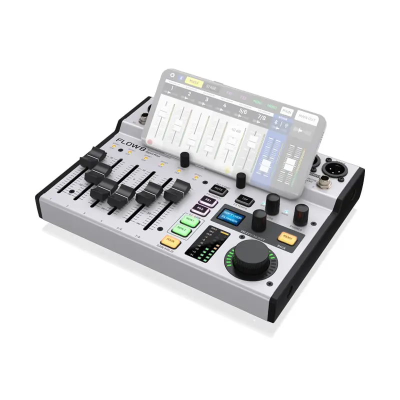 ทุกช่องเสียงใน FLOW 8 มาพร้อม EQ 4 แบนด์, คอมเพรสเซอร์, เอฟเฟกต์ 2 ช่อง และส่งสัญญาณไปที่มอนิเตอร์ได้ 2 ช่อง ทั้งมอนิเตอร์และบัสหลักยังมี EQ 9 แบนด์ พร้อมลิมิเตอร์เพื่อป้องกันไม่ให้เกิดเสียงดังเกินขีดจำกัดที่ลำโพงของคุณ