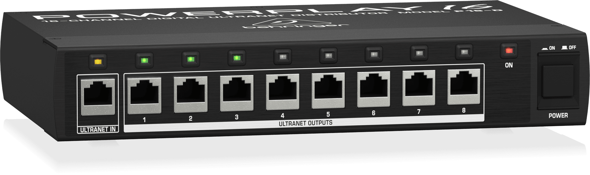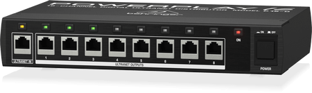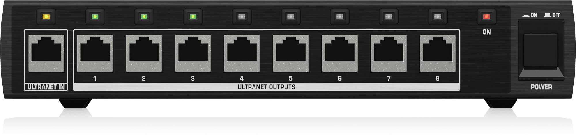 - 1 ULTRANET input feeds 8 ULTRANET outputs (RJ-45)