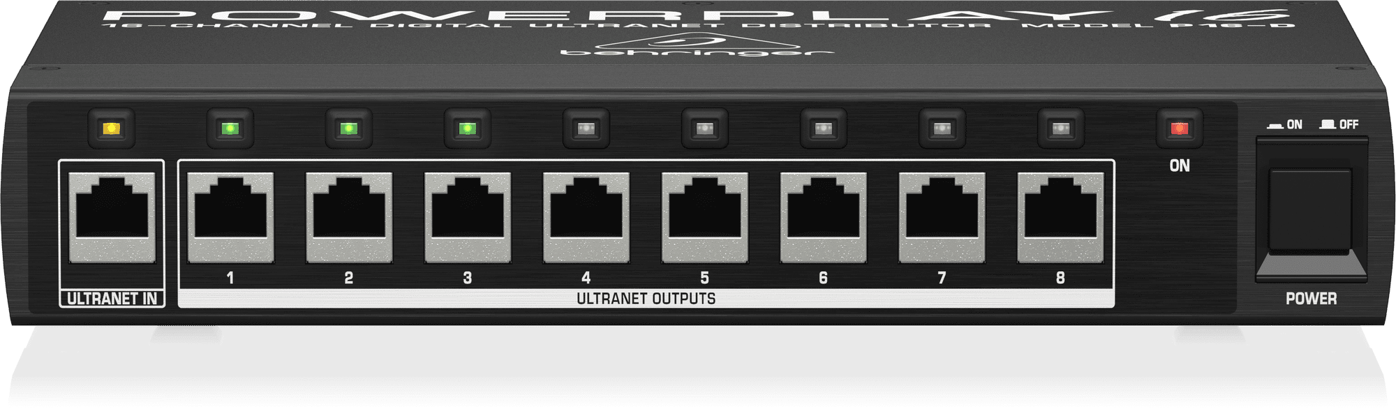 The POWERPLAY P16 system is the easy, affordable way to give live or recording musicians/vocalists what they really want – “more me!” When used in conjunction with your X32 Digital Mixing Console, P16-I Input Module or S16 Digital Snake, the P16-D distributor can provide 8 additional ULTRANET RJ-45 outputs, giving you the power to expand your existing P16-M system (up to 48 stations).