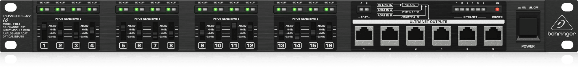 The POWERPLAY P16 system is the easy and affordable way to give live or recording musicians/vocalists what they really want – “more me!” Part of the P16 Personal Monitoring System, the P16-I input module can be used with any analog source, and convert up to 16 analog inputs into 24-bit digital audio to send to your P16-M Personal Monitoring Mixers.