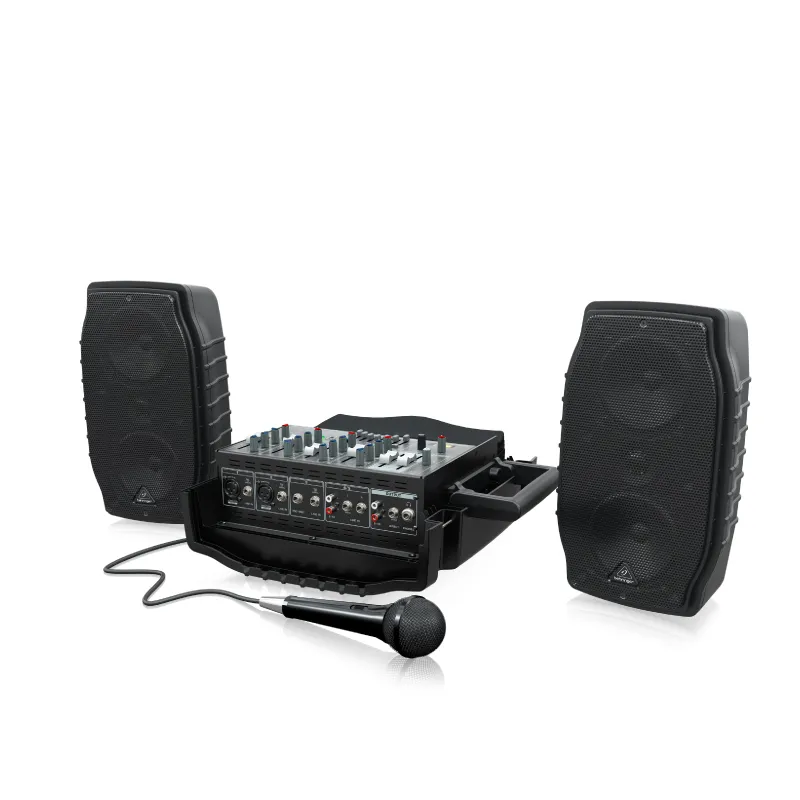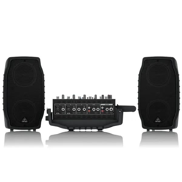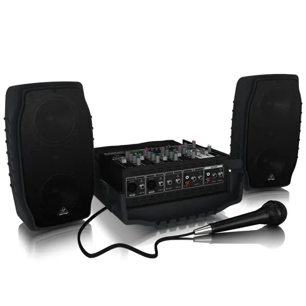 Armed with 200 Watts of massive output power, the PPA200 sets up in just minutes and provides room-filling sound, all in a rugged, carry-on style briefcase that is perfect for everything from parties to press conferences to sporting events. Everything you need is included in a convenient and easy-to-use package: two detachable speakers; a high-quality, “wireless-ready” 5-channel mixer; a BEHRINGER XM1800S microphone with a 20′ cable and clip; plus two speaker cables so you are ready to go.
