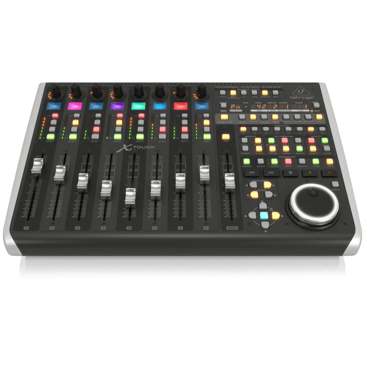 Universal Control Surface with 9 Touch-Sensitive Motor Faders, LCD Scribble Strips and Ethernet/USB/MIDI Interface