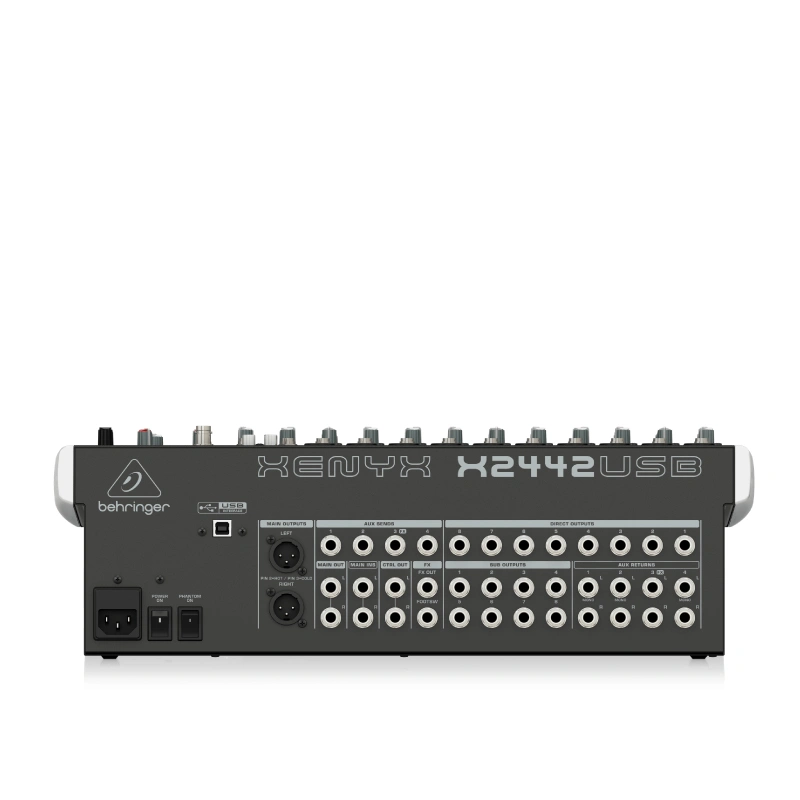 มิกเซอร์ X2442USB ให้เสียงคุณภาพระดับพรีเมียมด้วย XENYX Mic Preamps เกรดสตูดิโอออนบอร์ด 10 ตัวและ EQ British แบบพิเศษและคอมเพรสเซอร์แบบ “ปุ่มเดียว” ที่ใช้งานง่ายให้การควบคุมไดนามิกทั้งหมดเพื่อให้ได้เสียงที่หนักแน่นและชัดเจนที่สุด เพิ่มโปรเซสเซอร์ Multi-FX แบบ 24 บิต 24 บิตพร้อมค่าที่ตั้งไว้ล่วงหน้าระดับมืออาชีพที่แก้ไขได้ 16 ค่า รวมถึงรีเวิร์บ คอรัส แฟลงเจอร์ ดีเลย์ พิทช์ชิฟเตอร์ และมัลติเอฟเฟกต์