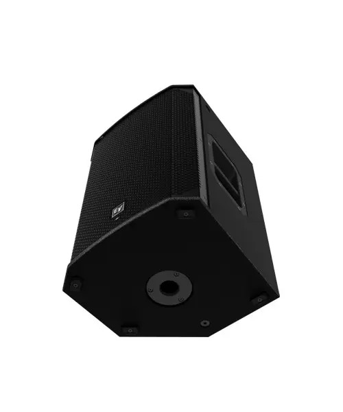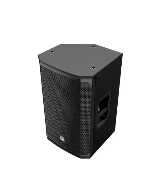 - Lightweight, compact 15-mm wood enclosure with internal bracing, durable EVCoat finish, eight M10 threaded mounting points, aluminum pole mounts, and all-metal handles.