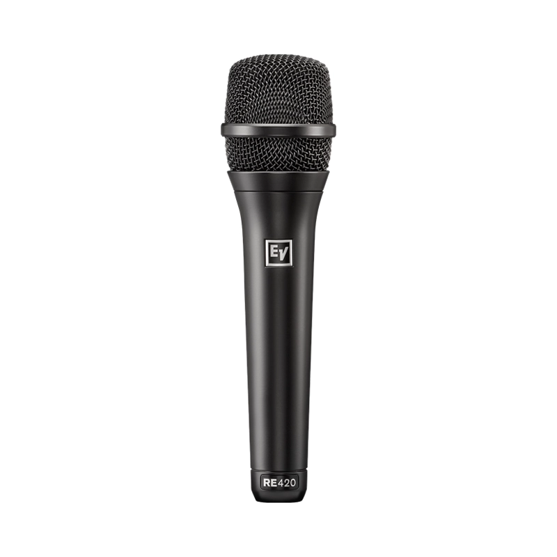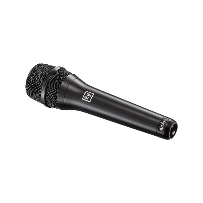 ไมค์สำหรับร้อง/พูด EV RE420 แบบคอนเดนเซอร์ ตอบสนองความถี่ 50 Hz – 20 kHz รูปแบบการรับเสียงแบบคาร์ดิออยด์ น้ำหนักเบาเพียง 326 กรัม ป้องกันเสียงรบกวนได้เป็นอย่างดี จากแบรนด์ ELECTRO-VOICE