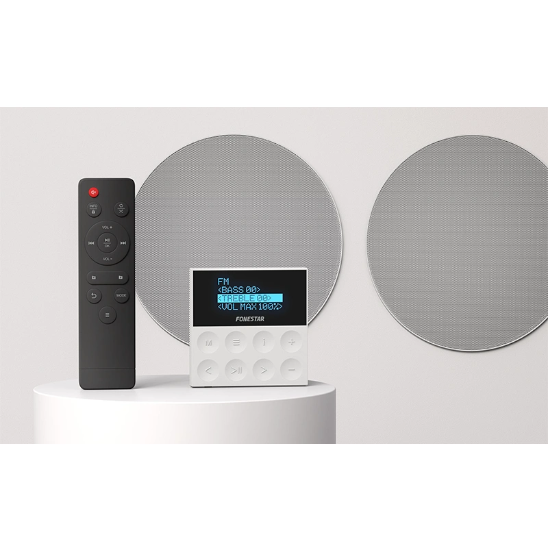 นอกจากนี้ยังมีฟังก์ชัน ตั้งเวลาปิดเครื่องอัตโนมัติ และการปรับเสียงเบส และเสียงสูง (Treble) ผ่านอีควอไลเซอร์ สามารถควบคุม ผ่านแผงสัมผัส หรือรีโมตที่มาพร้อมชุด ชุดลำโพงติดตั้ง ในกล่องมาตรฐาน ทรงสี่เหลี่ยม ผสานเข้ากับพื้นที่ ได้อย่างง่ายดาย เหมาะสำหรับระบบเสียง ขนาดเล็กในห้องพัก, ร้านค้าเล็ก ๆ หรือบ้าน