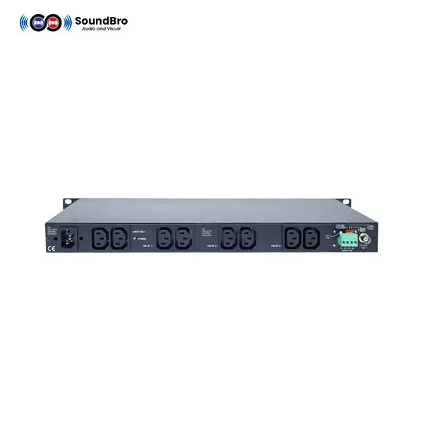- Six sequenced rear panel outlets (in 3 groups), two switched rear panel outlets, and one front panel switched outlet