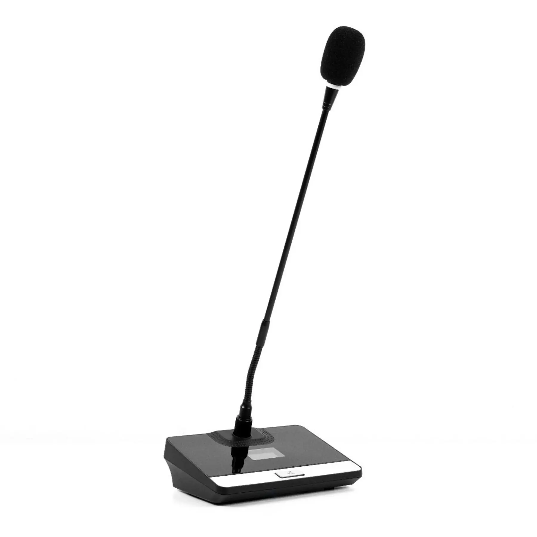 GYGAR GW-250ND ไมโครโฟนประชุมไร้สาย ระบบดิจิตอลสำหรับผู้ร่วมประชุม มาพร้อมไฟวงแหวนสีน้ำเงินแสดงการทำงาน มีจอ LCD แสดงสถานะทํางานแสดงผลภาษาไทย ก้านไมค์สามารถโค้งงอได้ ลำโพงในตัว และสวิตช์เปิด-ปิดไมโครโฟนขณะพูด