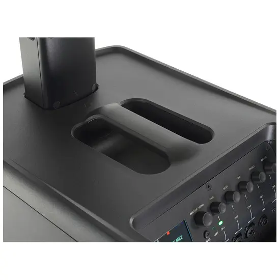 - PA components are stored in the woofer cabinet for easy, one-hand carry