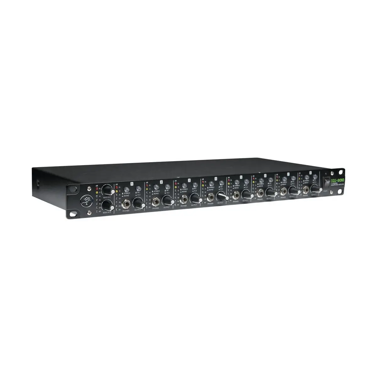 Mackie HM-800 เป็นแอมป์ขยายหูฟังแบบ 8 แชนแนล (Headphone Amplifier) ที่ออกแบบมาเพื่อการใช้งานระดับมืออาชีพ ทั้งในงานแสดงสดและงานบันทึกเสียงในสตูดิโอ สามารถกระจายสัญญาณเสียงไปยังหูฟังหลายตัวได้พร้อมกัน เหมาะสำหรับนักดนตรี นักร้อง โปรดิวเซอร์ และซาวด์เอนจิเนียร์ที่ต้องการระบบมอนิเตอร์หูฟังที่ยืดหยุ่นและควบคุมได้อย่างสะดวก