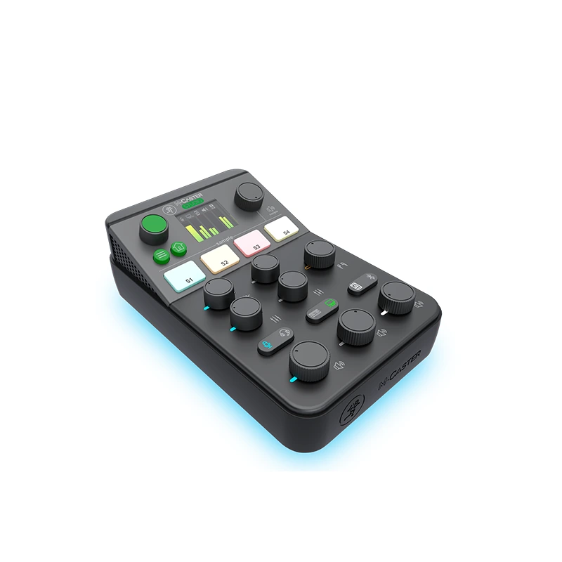 - Built-in Sampler allows you to transfer and store audio files directly on M•Caster Studio and trigger them via 4 dedicated buttons