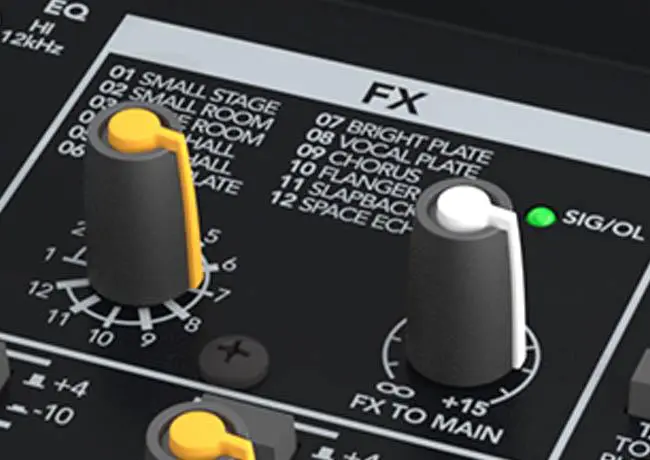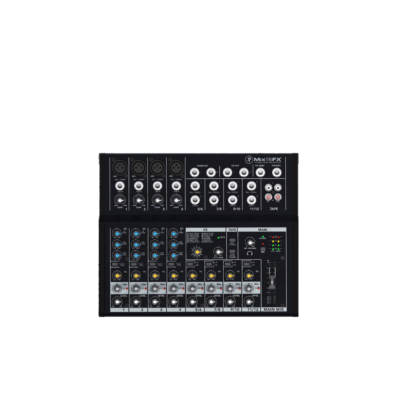 The Mix12FX includes a built—in FX processor with 12 reverbs, choruses and delays- From a touch of reverb on vocals to a little snare delay, these useful effects let you take your mix to the next level.