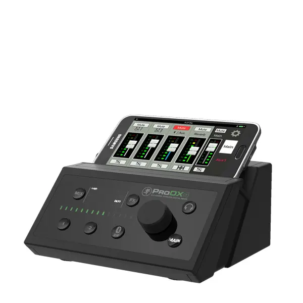 The ultra-compact ProDX Series mixers are perfect for mixing on the fly in dimly lit or tight spaces- With their clean and professional single knob front panel design, you get instant access to level adjustments for any input or output at the touch of a button. And with the integrated control bridge you have the perfect place to set your phone when streaming music and mixing via the MixerConnectm app-