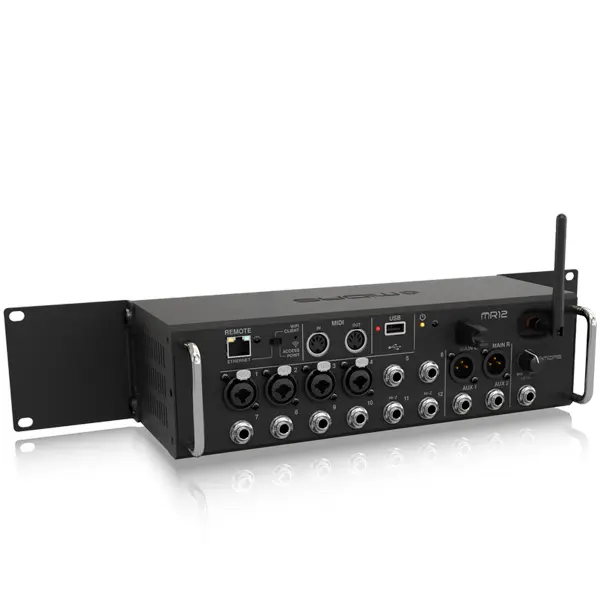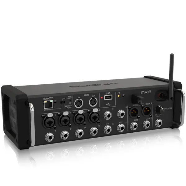 เครื่องผสมสัญญาณเสียง ระบบดิจิตอล MIDAS MR12 มิกเซอร์ดิจิตอล with 4 MIDAS PRO Preamps, 8 Line Inputs, Integrated Wifi Module and USB Stereo Recorder สามารถควบคุมผ่าน WIFI ได้ทั้งบน iPad/Android Tablets ได้ MIDAS MR12 Digital Mixer จากแบรนด์ MIDAS
