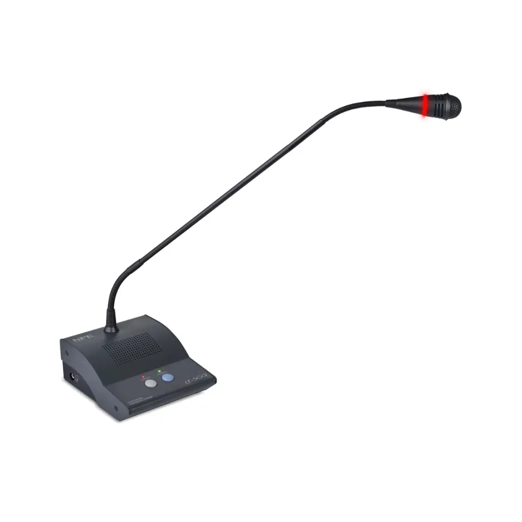 NPE CF-50(L) Series+CF-50A ชุดไมค์ประชุม 11 ท่าน ชุดไมค์ประชุมสำหรับ 11 ท่าน ก้านไมค์ยาว 60 ซม.ในซีรีย์ CF-50 ประกอบด้วย เครื่องควบคุมไมโครโฟนประชุม NPE CF-50A ที่เชื่อมต่อกับชุดไมค์ประชุมได้สูงสุด 50 ชุด ไมโครโฟนประชุม NPE CF-50CR (L) สำหรับประธาน และ NPE CF-50DR (L) สำหรับผู้ร่วมประชุม