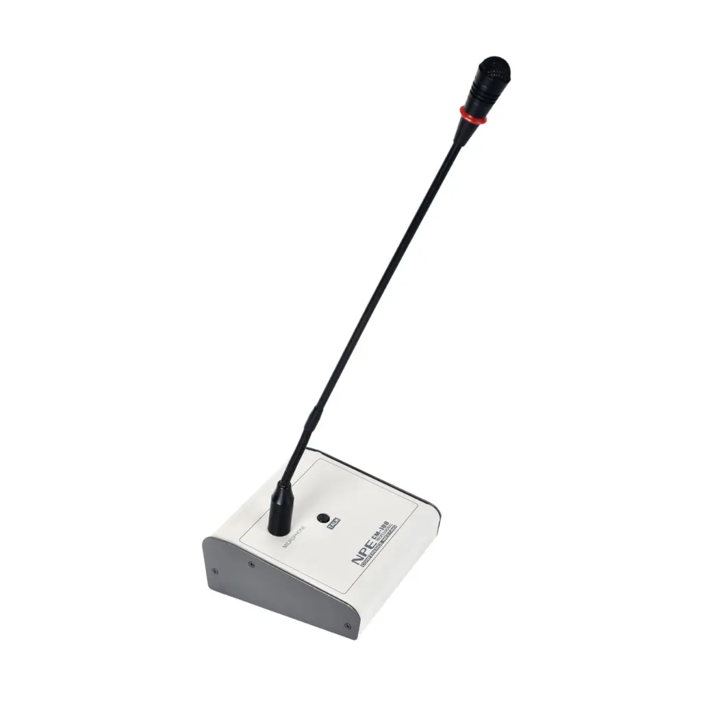 NPE CM-100 ไมค์ประชุมตั้งโต๊ะ conference gooseneck พร้อมไฟวงแหวนและ LED แสดงสถานะ ปรับองศา มุม ของไมค์ได้อย่างอิสระมีสวิตช์สำหรับเปิด-ปิดการทำงานของไมโครโฟน สามารถตอบสนองความถี่ได้ตั้งแต่ 100Hz ถึง 20KHz
