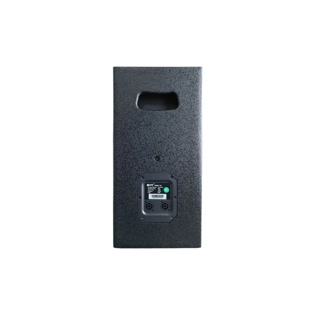 NPE PRO-10 ตู้ลำโพง 10 นิ้ว 2 ทาง สามารถรับกำลังขับได้ 500 วัตต์ ให้ความดัง 126 dB SPL ตอบสนองความถี่ 65 Hz – 20 kHz สามารถวางเป็นมอนิเตอร์ มีแป้นสำหรับสวมขาตั้งลำโพง