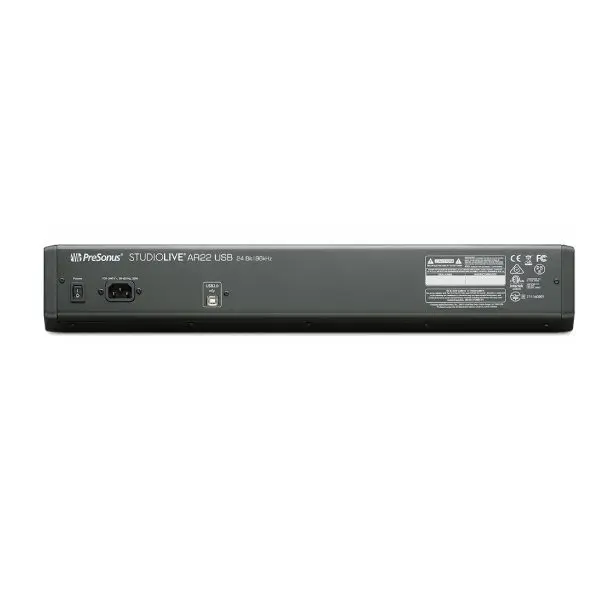 PRESONUS StudioLive AR22 USB mixers are packed with the connections and controls needed to mix and record live, in the studio, and in rehearsal. Each of the 12 mono channels and four stereo channels includes a 60 mm fader for level control; a mic input with one of PreSonus’ prized Class A preamps; 3-band EQ; and more. Besides the main outputs, you get two monitor mix outputs, each with a dedicated bus, for feeding stage wedges, a headphone amp, or an in-ear system. You also get control-room outputs with level control to feed your studio or front-of-house monitors.