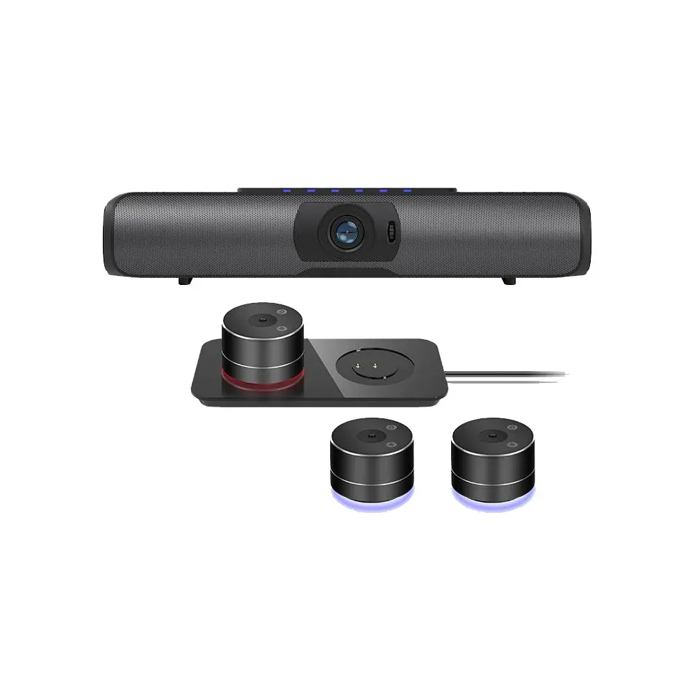 Video and audio conferencing camera with expansion microphones design for small spaces or huddle room