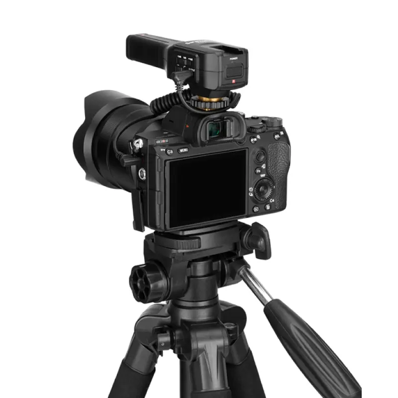 ไมโครโฟนคอนเดนเซอร์ทิศทางแบบแคปซูลคู่ Vmic4 ที่ติดตั้งกับกล้องได้ จับเสียงคุณภาพสูงจากทั้งด้านหน้าและด้านหลัง มีอินพุตขนาด 3.5 มม. เพื่อรองรับการใช้งานที่หลากหลาย การควบคุมอัตราขยายที่สลับได้ (-10dB/0dB/+10dB) และตัวกรองความถี่ต่ำ (200Hz) รองรับการตรวจสอบแบบเรียลไทม์ ด้วยสายเคเบิลเอาท์พุต TRS เมาท์แบบ Cold-show ในตัวสามารถให้ผู้ใช้ติดอุปกรณ์เสริมภายนอก เช่น ไฟ จอภาพ ฯลฯ การบันทึกเสียงคุณภาพสูงเหมาะสำหรับ การบันทึกหลายคน, ยูทูปเบอร์, สตรีมมิ่งแบบสด