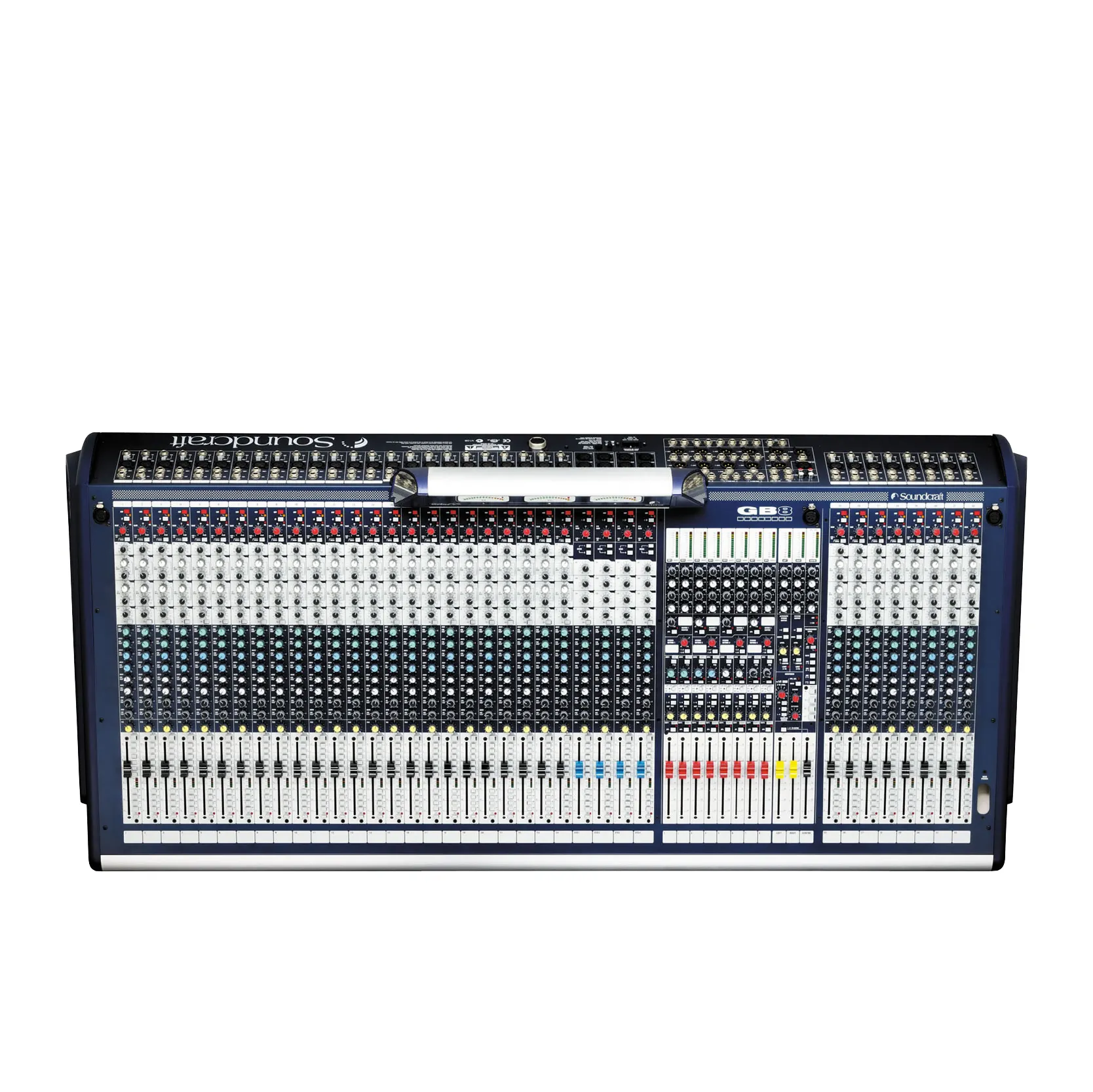 Available in frame sizes from 24 to 48 channels, each with four full-function stereo channels and four stereo returns, the GB8 is designed for installations such as churches and performance venues, or for small touring sound systems. The dual-mode topology implemented to such success on the MH3 and MH4 desks allows the GB8 to be used on FOH or monitor duties, with fader control of group or aux outputs. Additional features over the GB4 include a 1kHz oscillator and a meter bridge with three led meters that very closely emulate the ballistics of VU meters.