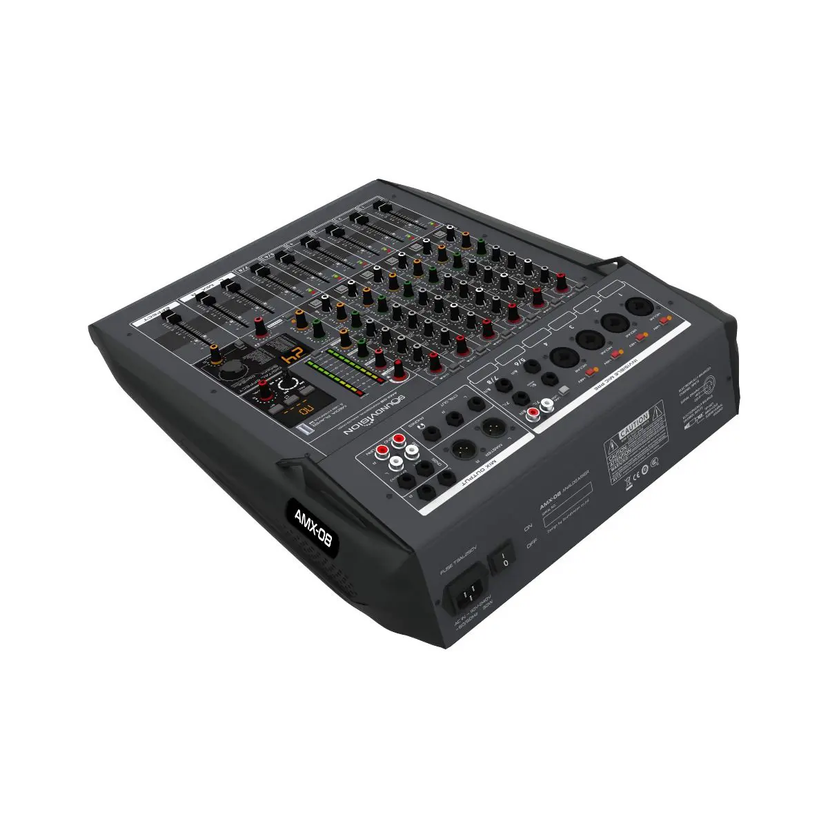 AMX-08 เป็นมิกเซอร์อนาล็อก น้องเล็กสุดในซีรีส์ AMX จากแบรนด์ Soundvision มาพร้อม 8 ชาแนล ประกอบไปด้วย 4 แชนแนล สำหรับ Mono inputs และ 2 แชนแนล สำหรับ Stereo inputs โดยช่องอินพุตโมโนแต่ละช่องมี 3-bands EQ (1-bands สำหรับ swept mids) ในส่วนช่องอินพุตเตอริโอแต่ช่องจะมี 4-bands EQ มาพร้อมปรีไมค์ Ultra-low noise invisible และ +48V phantom power ที่แยกกันในแต่ละชาแนล นอกจากนี้ยังมี PFL/PEAK LED, เฟดเดอร์ 60 มม. สำหรับแต่ละชาแนล, USB audio interface 2-in / 2-out และโปรเซสเซอร์ DSP 24-bit เหมาะสำหรับ คอนเสิร์ต ห้องประชุม โบสถ์หรือศาสนสถาน