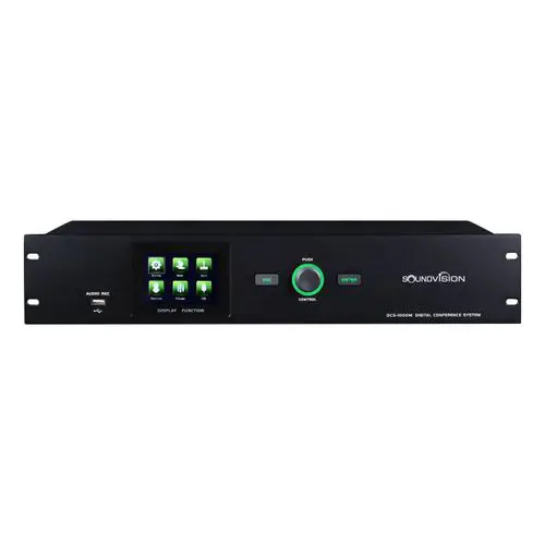 SOUNDVISION DCS-1000M เครื่องควบคุมชุดประชุมระบบไร้สาย เครื่องควบคุมรุดประชุม ระบบดีจิตอล พร้อมช่อง USB สำหรับปันทีกเสียงการพูดประชุมพร้อมกล้องติดตาม Ful! HD สูงสุด4ตัว, จอแสดงผล Touch screen แสดงสถานะฟังก์ชั่นการใช้งาน ลมารดเชื่อมต่อกับชุดประชุมสูงสุด 256 ชุด และ สามารถรองรับไมโครโฟน ชุดประชุมในระบบเดียวกัน ได้มากถึง 1200 ยู่นิต (by power extended machine.)