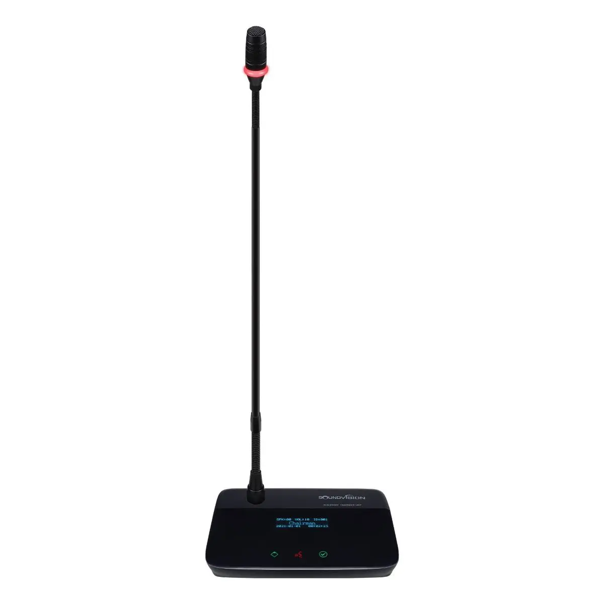- The microphone head has a two-color speaking light ring, the light ring is always red when the unit speaks, and the light ring is always green when the unit requests to speak.