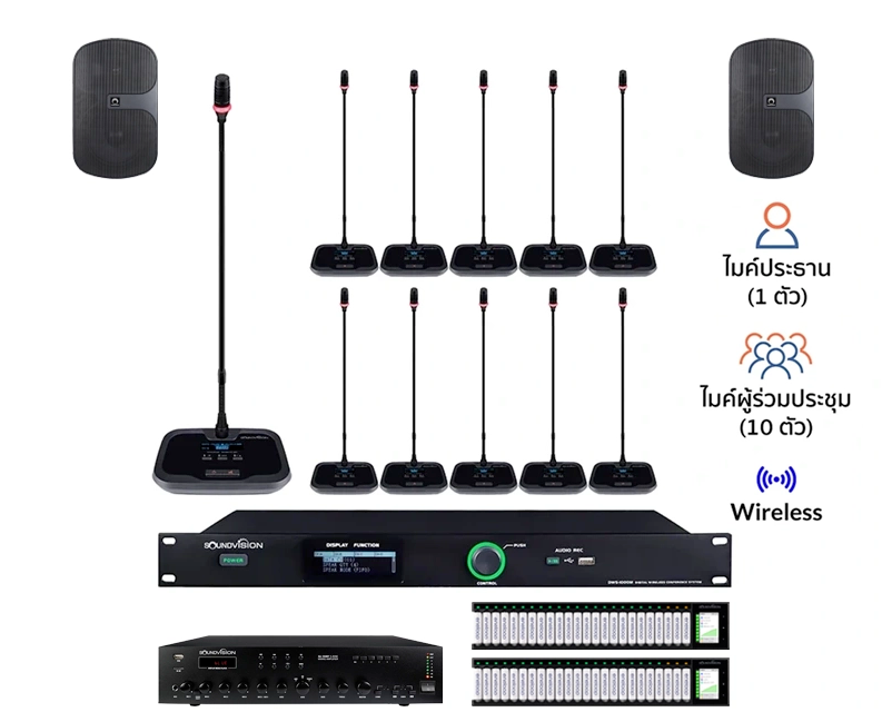 ชุดไมค์ประชุมดิจิตอล SOUNDVISION DWS-1000 SET SYSTEMS 2 แบบไร้สาย 11 ท่าน พร้อมเครื่องชาร์จแบตเตอรี่(DSC-24-RB) + แบต 24 ก้อน