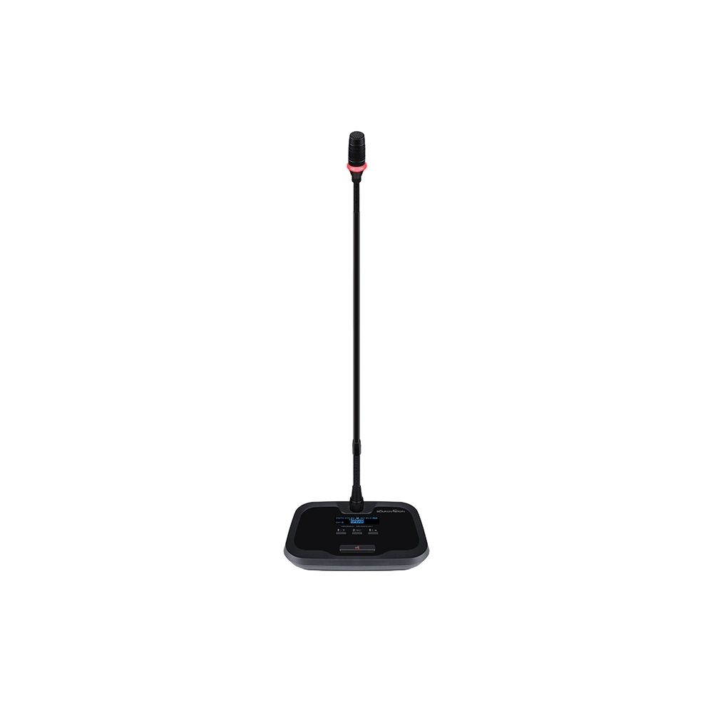 ไมโครโฟนชุดประชุมระบบดิจิตอลแบบไร้สาย สำหรับรุ่น DWS-1000 ด้วยการออกแบบที่เรียบง่าย มีความสง่างาม มีหน้าจอแสดงผลแบบ OLED แสดงข้อมูลหมายเลข ID, สถานะแบตเตอรี่, สถานะของไมโครโฟน , ช่องสัญญาณที่ควบคุม เป็นต้น มีปุ่มกดฟังก์ชั่น priority ในส่วนของ ไมโครโฟนประชุมสำหรับประธานเท่านั้น ในการควบคุมจัดลำดับความสำคัญการประชุมทั้งหมด และ สามารถยุติ หรือ ยกเลิกหน่วยอื่นๆ ที่กำลังสนทนาอยู่ได้