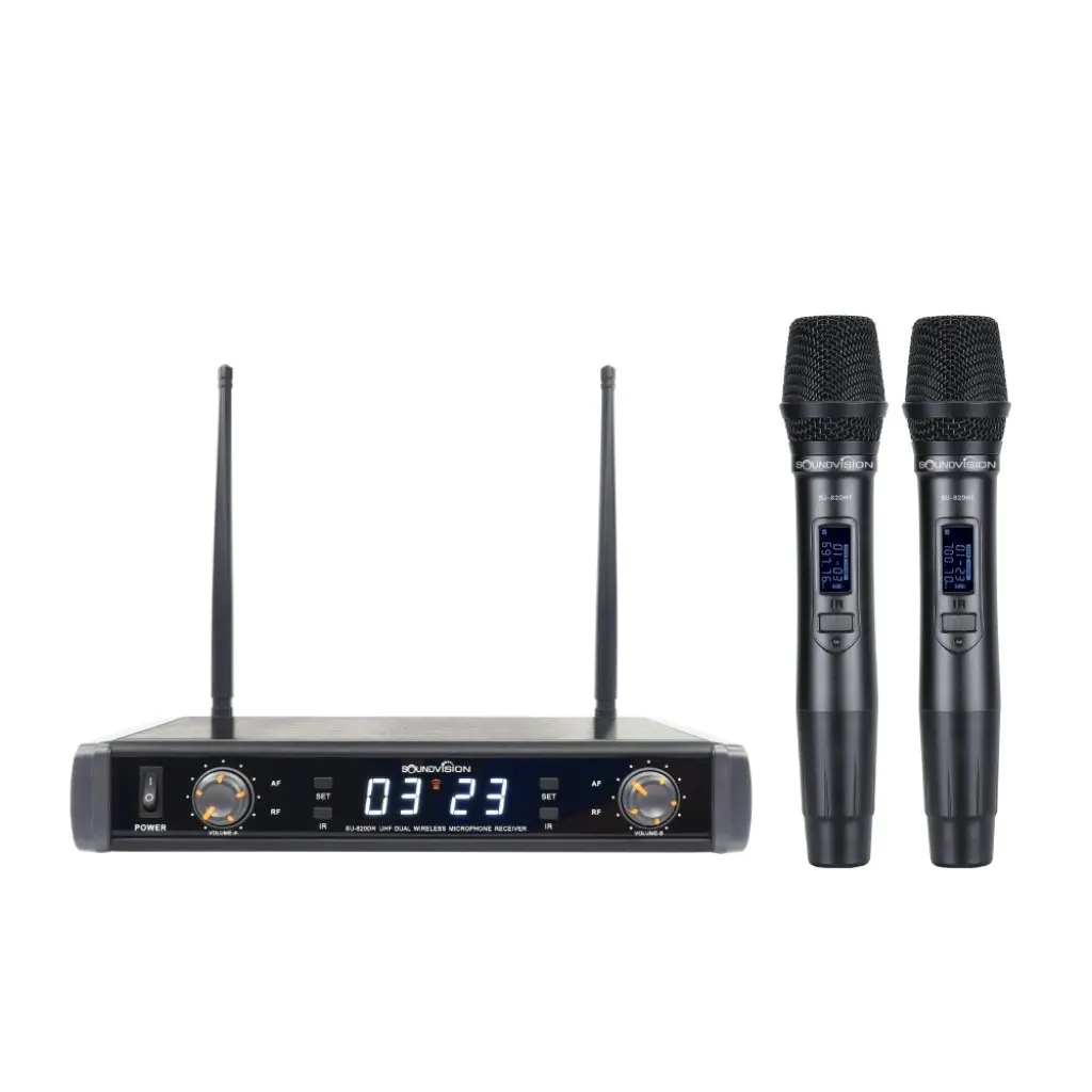 SOUNDVISION SU-820D/HT ไมโครโฟนไร้สายมือถือคู่ ช่วงย่านความถี่ UHF 697.3 ~ 702.7 MHz ตามข้อกำหนดของกสทช. (ประเทศไทย) สามารถเปลี่ยนช่อง ความถี่สัญญาณได้ 48 ช่อง (2 x 24) กำลังส่ง 20 mW รับสัญญาณได้ไกลถึง 50 เมตร (ที่โล่งแจ้ง) ด้วยตัวเครื่องรับสัญญาณ ที่เต็มประสิทธิภาพ ความสามารถในการป้องกันการ รบกวนที่ดีเยี่ยม