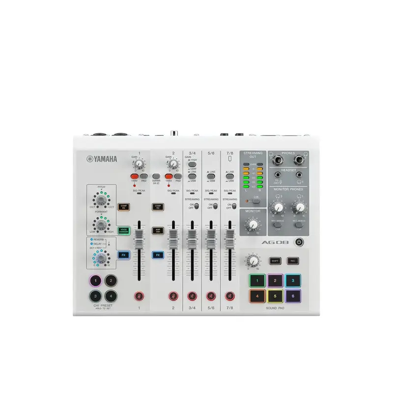 ที่มีอินพุต Phantom Power สองช่องสำหรับไมโครโฟนคอนเดนเซอร์ อินเทอร์เฟซเสียง USB ในตัว สตรีมมิ่ง มิกเซอร์ AG08 จากแบรนด์ YAMAHA